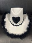 SOMBRERO COWBOY CORAZON Y PLUMAS BLANCO Y NEGRO