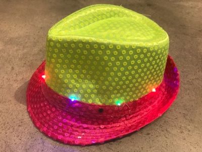 GUAPO LENTEJUELAS AMARILLO CON LEDS Y CINTA FUCSIA EN ALA TAMBIEN