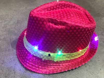 GUAPO LENTEJUELAS FUCSIA CON LEDS Y CINTA AMARILLA