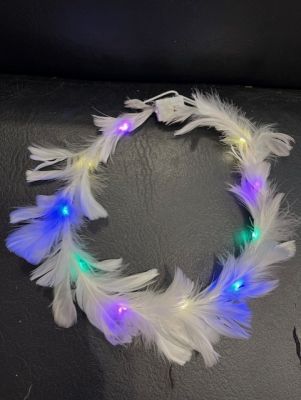 VINCHA ALAMBRE PLUMAS VARIOS COLORES LED