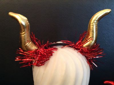 VINCHA DIABLO TELA METALIZADA DORADA GRANDE
