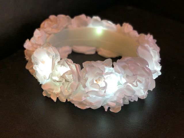 VINCHA ACETATO FLORES BLANCO 360 CON LEDS TOTAL MACA
