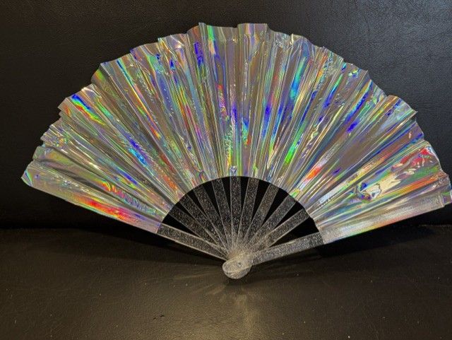 ABANICO DE TELA TORNASOLADO PLATA