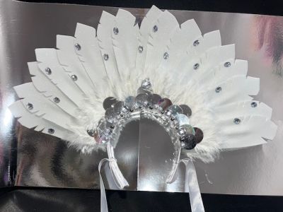 VINCHA CORONA ERIKA PLUMAS BLANCAS GOMA