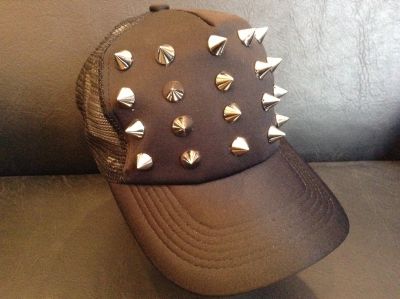 CAP NEGRO CON TACHAS GRANDES PLATA Y RED